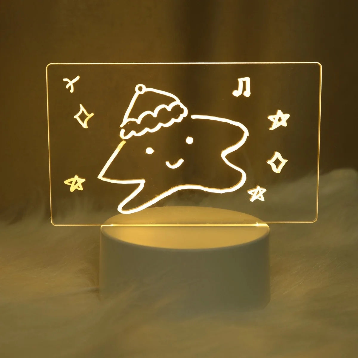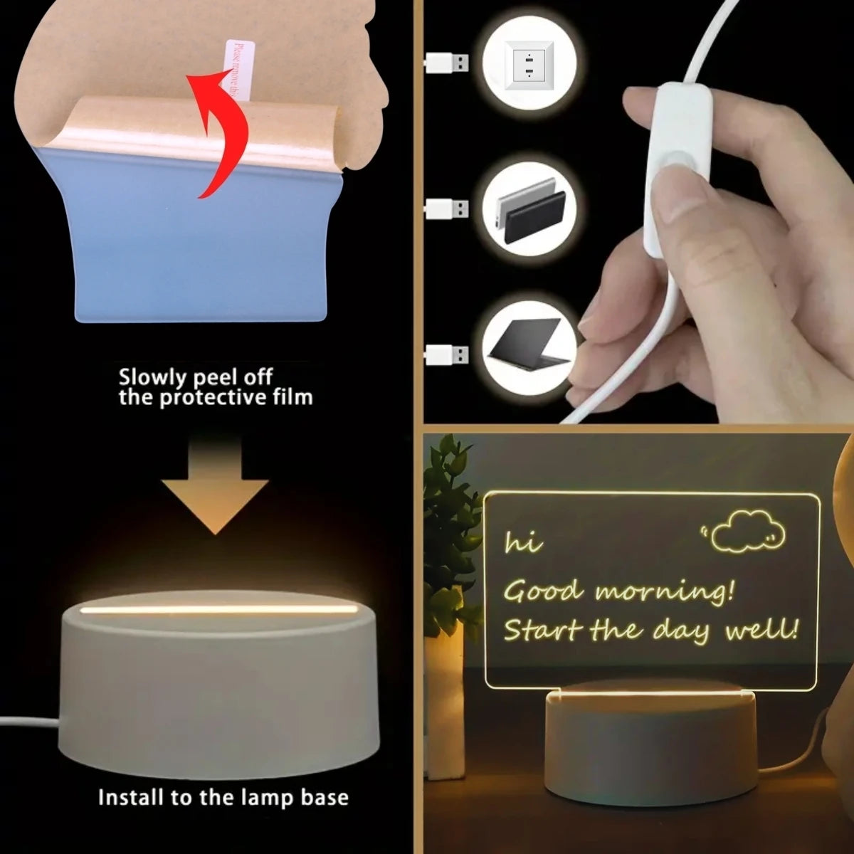 Acrylic LED Message Board Night Light – Erasable Writing Panel & Creative Bedside Lamp